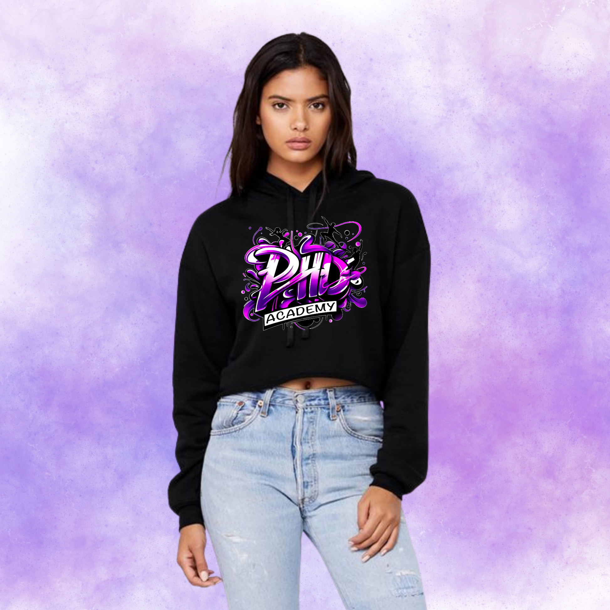 Dance in style and comfort with our PHD Academy crop hoodies! Designed with a flattering cropped fit and soft cotton/poly fleece blend, these hoodies are perfect for rehearsals, competition weekends, or everyday wear when you want to show your dance pride.