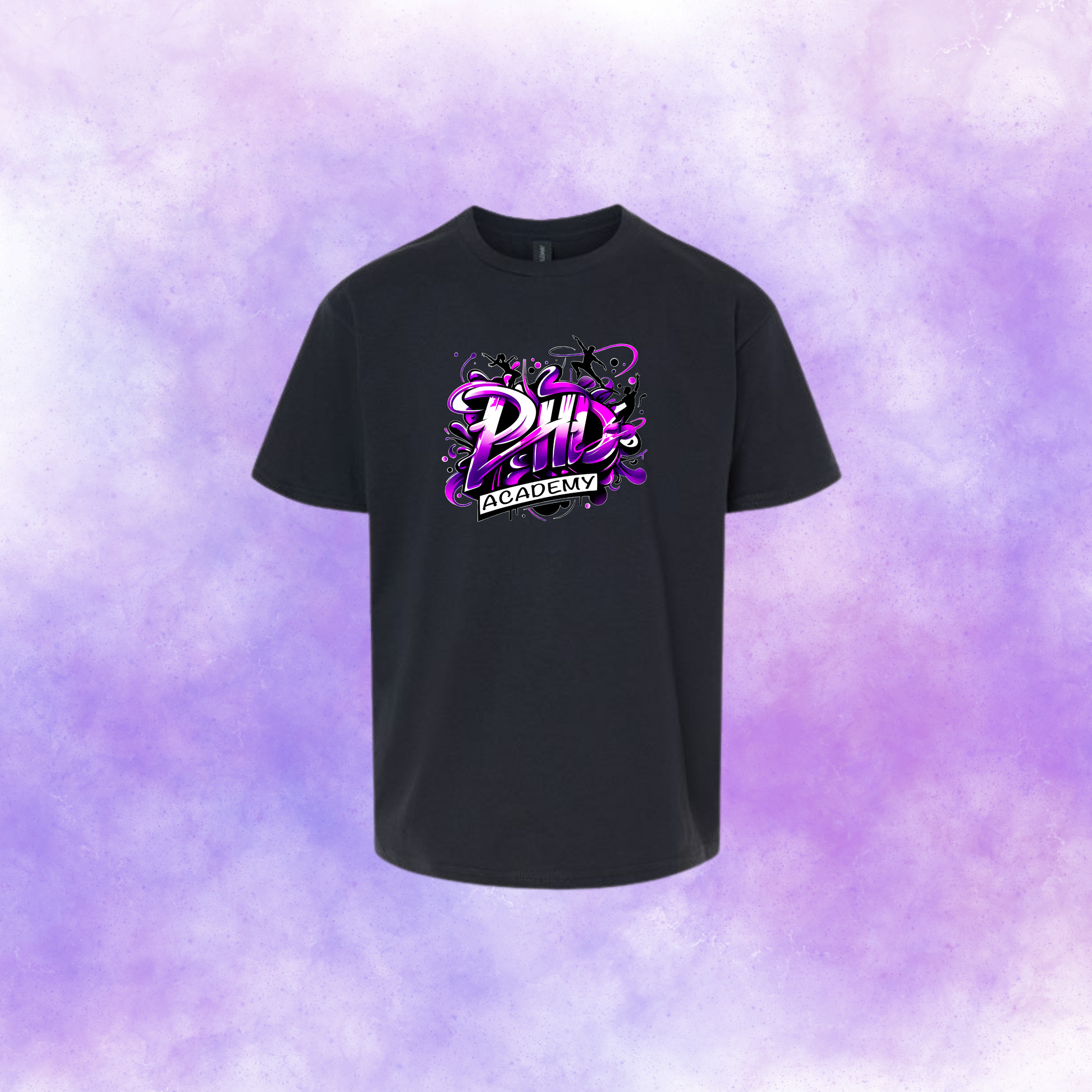 Let your dancer show off their PHD Academy pride in style! These youth tees are soft, durable, and perfect for rehearsals, competitions, or casual wear. Available in Black or Dark Lavender, each shirt comes in two unique logo styles so every dancer can find their perfect fit.